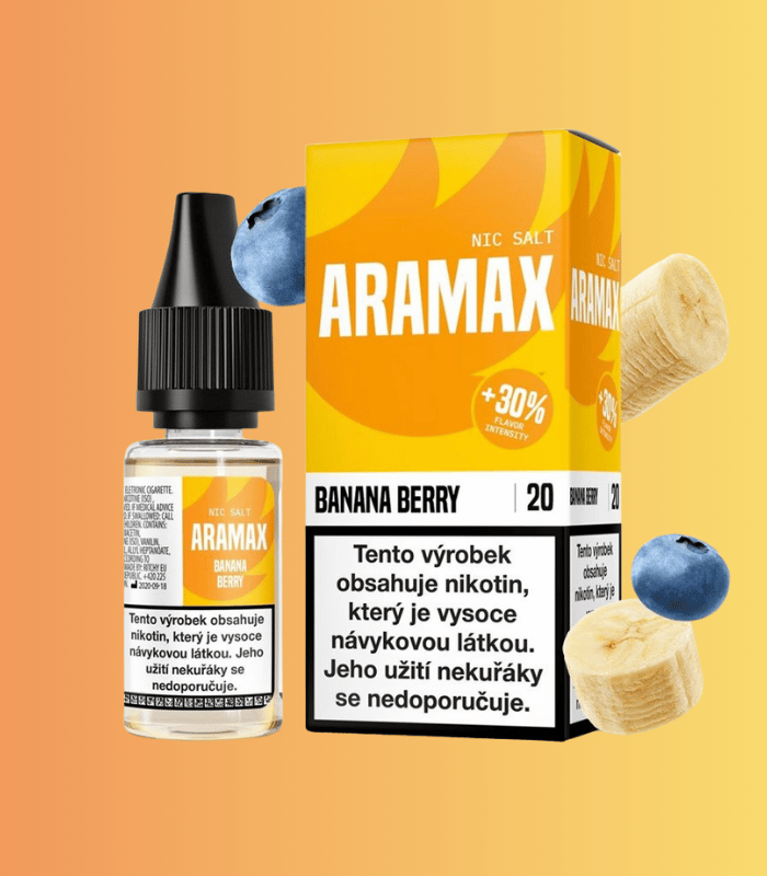 Aramax Salt Banana Berry přináší lahodnou kombinaci sladkého banánu a šťavnatých lesních plodů. Banán dodává jemnou krémovou sladkost, zatímco lesní ovoce přináší osvěžující kontrast v podobě malin, borůvek či jahod. Každý potah působí jako ovocný smoothie – vyvážený, sladký a přirozeně osvěžující. Tento liquid je ideální pro vapery, kteří hledají harmonickou směs sladkého ovoce a jemně nakyslého tónu.