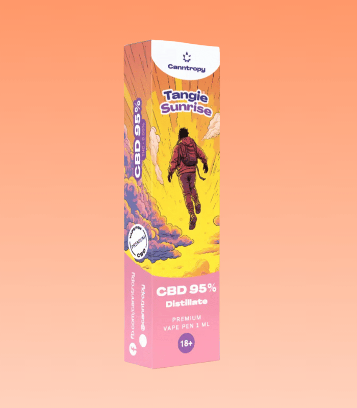 Canntropy CBD 95 % Tangie Sunrise přináší dokonalé propojení tropické chuti a relaxačního účinku CBD v elegantním kompaktním vaporizéru. Tento jednorázový pen obsahuje 95 % čistého CBD destilátu, díky čemuž nabízí rychlý, přirozený a efektivní způsob, jak si dopřát klid a regeneraci kdykoliv během dne. S obsahem THC pod 0,2 % je produkt zcela legální, bezpečný a vhodný pro každodenní použití.
