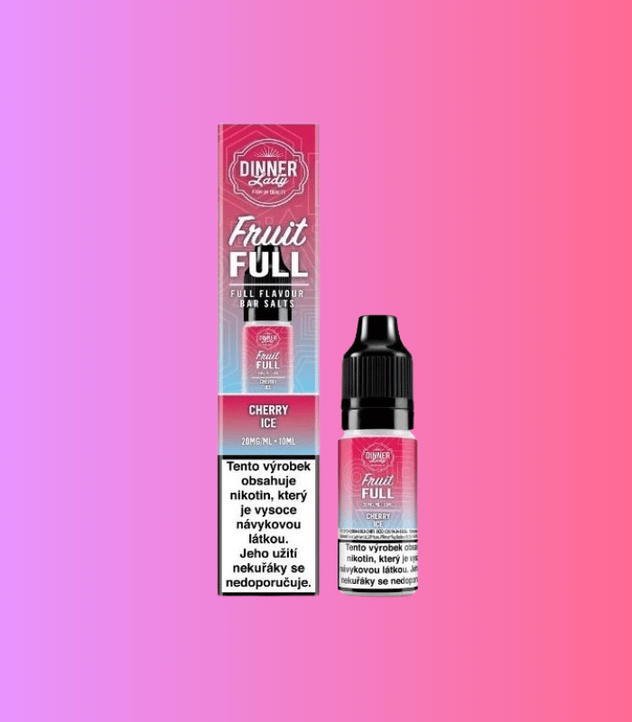 Dinner Lady Bar Salts Fruit FULL Cherry Ice 20mg – sladká třešeň s jemným ledovým efektem a hladkým NicSalt nikotinem. Prémiový britský e-liquid pro MTL vaping.