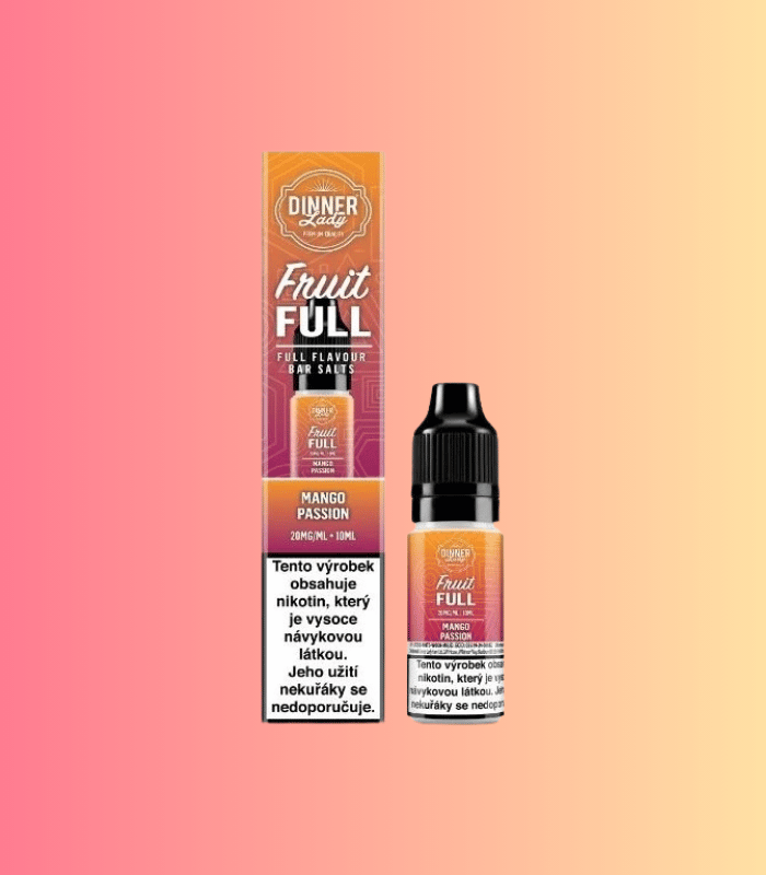 Dinner Lady Bar Salts Fruit FULL Mango Passion 20mg přináší harmonickou kombinaci tropického manga a sladkokyselé marakuji, která vás okamžitě přenese do exotického ráje. Zralé mango dodává směsi jemnou krémovost a přirozenou sladkost, zatímco marakuja přináší lehce kyselý tón, který celou chuť krásně oživí. Výsledkem je dokonale vyvážený e-liquid s intenzivní ovocnou chutí a osvěžujícím zakončením.