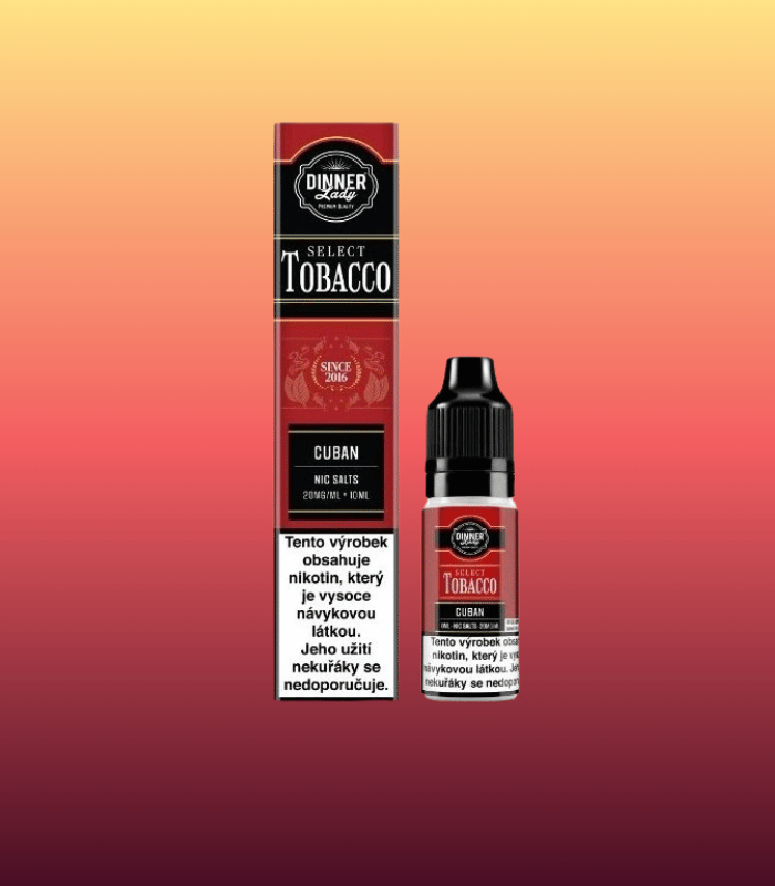 Dinner Lady Cuban Tobacco využívá nikotin typu NicSalt, který má nižší pH a zaručuje hladký, příjemný potah bez podráždění krku. Tento typ nikotinu se vstřebává rychleji, což poskytuje okamžité uspokojení bez ostrého hitu. E-liquid je ideální pro MTL vaping a moderní POD systémy, které věrně zachycují i nejjemnější nuance chuti kubánského tabáku.