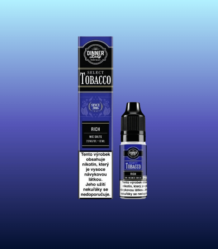 Britská značka Dinner Lady patří mezi nejuznávanější výrobce e-liquidů na světě. Její produkty si získaly pověst díky autentickému chuťovému podání, vysoké kvalitě a precizní výrobě. Řada Bar Salts Tobacco vznikla jako pocta tabákovým klasikám – od jemných, nasládlých tónů až po plné, kouřové směsi. Rich Tobacco osloví každého, kdo hledá vyvážený tabákový e-liquid s jemnou ořechovou hloubkou.