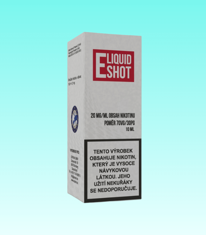 E-Liquid Shot booster – 70VG/30PG 20 mg/ml 10 ml je oblíbený nikotinový booster vhodný pro všechny, kdo chtějí míchat vlastní e-liquidy a kontrolovat výslednou sílu nikotinu. Díky vysokému obsahu rostlinného glycerinu (VG 70 %) vytváří hustou páru, jemný potah a plnější chuť. Poměr 70VG/30PG je ideální pro DL a RDL vaping a zajišťuje optimální vyvážení mezi chutí a produkci páry.