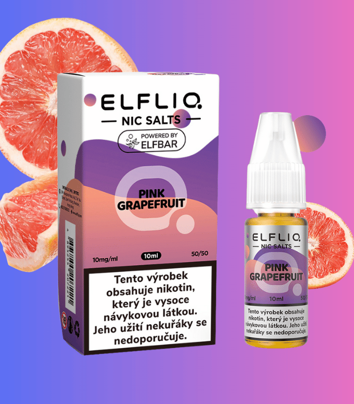 Elfliq Salt Pink Grapefruit – výrazná chuť růžového grapefruitu v nikotinové soli. Poměr VG/PG 50/50, balení 10 ml, osvěžující citrusový vaping.