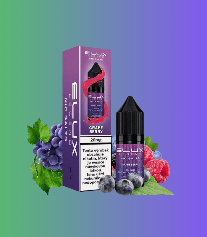 Elux Legend Salts – Grape Berry přináší osvěžující spojení sladkého hroznového vína a šťavnatých lesních plodů. Tento harmonický mix nabízí bohatý ovocný profil, kde se plná sladkost hroznů krásně doplňuje s jemnou kyselinkou bobulového ovoce. E-liquid s nikotinovou solí poskytuje hladký potah a rychlý nástup nikotinového účinku.