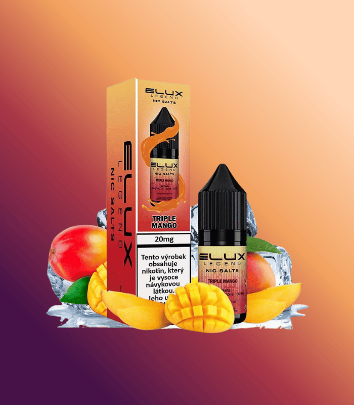 Elux Legend Salts – Triple Mango přináší intenzivní ovocný zážitek z trojité dávky manga. Sladká, šťavnatá a exotická chuť se v každém potahu rozvíjí do plné hloubky, díky čemuž je ideální volbou pro milovníky tropických e-liquidů. Tento e-liquid s nikotinovou solí poskytuje hladký potah a rychlé uspokojení nikotinové potřeby.