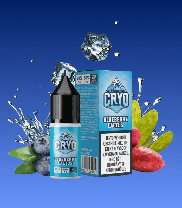 Infamous Cryo Blueberry Cactus je moderní ovocná kombinace, která vás překvapí svou originalitou. Sladká a šťavnatá borůvka se zde snoubí s neobvyklou chutí kaktusu, který přináší lehce nasládlý, osvěžující a jemně bylinný nádech. Celý mix je zakončen chladivým efektem, jenž přidává pocit svěžesti a dělá z tohoto liquidu ideálního společníka na každý den. Chuť není přehnaně sladká, takže ji ocení i ti vapeři, kteří mají rádi vyvážený profil bez přeslazení.