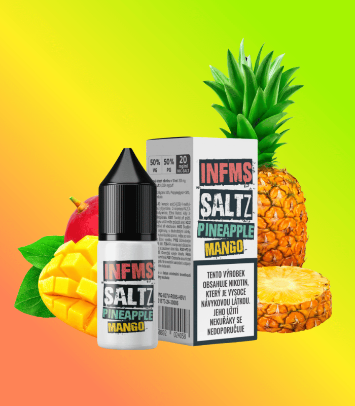 Infamous Saltz Pineapple Mango je tropický e-liquid, který spojuje sladce šťavnaté mango s osvěžujícím ananasem. Při každém potahu se nejprve projeví medová sladkost zralého manga, následovaná lehce kyselkavým a osvěžujícím tónem ananasu. Výsledkem je dokonale vyvážený mix, který vás přenese do exotických krajin. Tato kombinace je ideální pro všechny, kteří hledají svěží a energizující chuť, která se hodí i pro celodenní vaping.