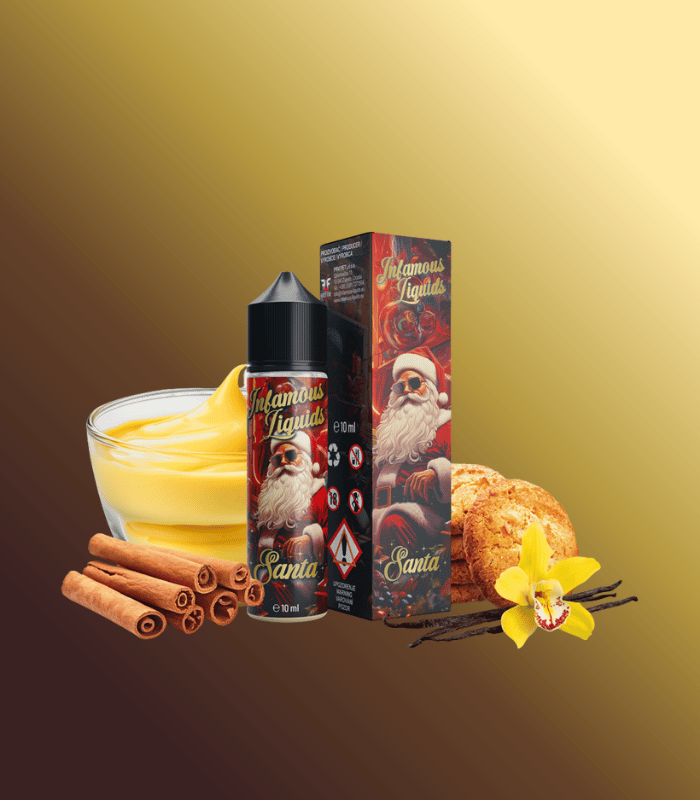 Infamous Special Santa ocení všichni, kdo mají rádi sladké dezertní příchutě s jemným kořeněným podkresem. Tóny máslové sušenky, skořice a vanilky tvoří ideální kombinaci pro milovníky sofistikovaných aromat. Tato příchuť je výbornou volbou pro večerní vaping, ale díky vyváženosti ji užijete i při celodenním používání.
