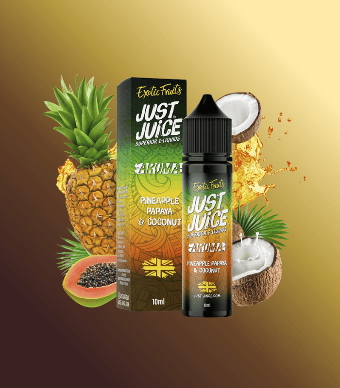 Příchuť Just Juice Pineapple, Papaya & Coconut přináší na scénu dechberoucí blend tropických chutí, který posouvá zážitek z vapování na úplně novou úroveň. Sladký a šťavnatý ananas se prolíná s jemně nasládlou papájou, zatímco kokos dodává krémovost a exotickou hebkost. Tato dokonale vyvážená kombinace vás vtáhne do světa sluncem zalitých pláží a okamžitě si ji zamilujete.