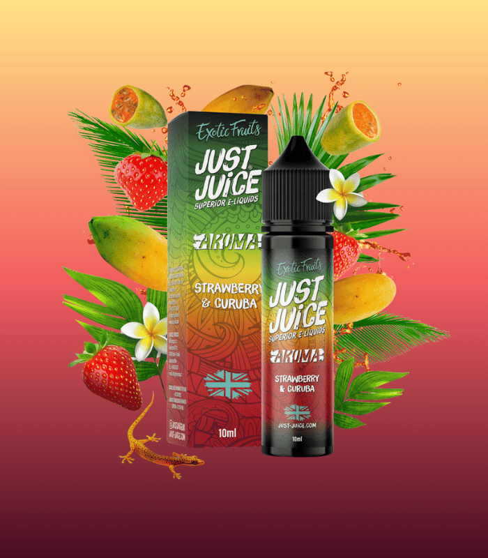 Příchuť Just Juice Strawberry & Curuba přináší jedinečné propojení tradiční sladké jahody a neobvyklého tropického ovoce curuba. Zatímco jahoda nabízí šťavnatou a plnou chuť, curuba přidává osvěžující exotický tón připomínající jablko s lehce nakyslým podkresem. Výsledkem je dokonale vyvážený mix, který zaujme každého, kdo touží po něčem novém a neotřelém.