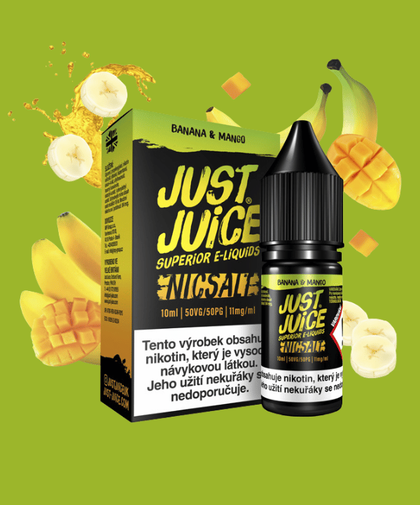 Just Juice Salt Banana & Mango 10 ml nabízí krémovou banánovou chuť doplněnou šťavnatým mangem pro tropický zážitek.