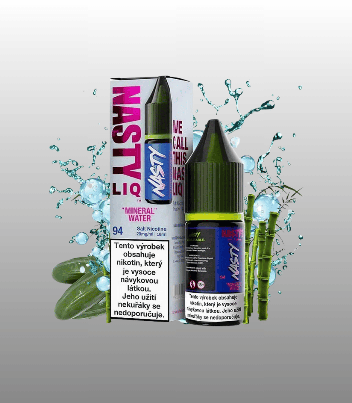 Nasty LIQ Salt Mineral Water přináší jemnou chuť inspirovanou pramenitou vodou. Obsahuje 20 mg nikotinové soli a poměr 50VG/50PG, který zajišťuje hladký potah a lehký, osvěžující vaping bez sladkosti a mentolu.