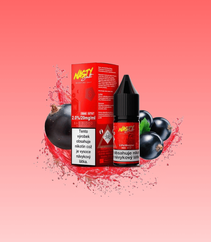 Nasty Salt Bad Blood je legendární příchuť, která kombinuje intenzivní chuť černého rybízu s jemným chladivým efektem. Tento e-liquid s nikotinovou solí patří mezi nejznámější a nejoblíbenější z celé nabídky značky Nasty Juice. Sladkokyselý rybízový profil spolu s lehkým mentolem tvoří vyvážený mix, který potěší při každodenním vapování.