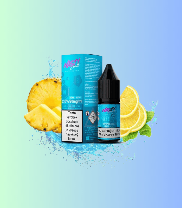 Nasty Salt Slow Blow je nezaměnitelná příchuť, která kombinuje sladké tropické ananasové tóny s osvěžujícím limetkovým podtónem a jemným chladivým závěrem. Tento e-liquid s nikotinovou solí nabízí výrazný chuťový profil, který zůstává příjemně svěží i při celodenním vapování. Příchuť patří mezi legendární bestsellery značky Nasty Juice a v nikotinové soli dostává nový rozměr.