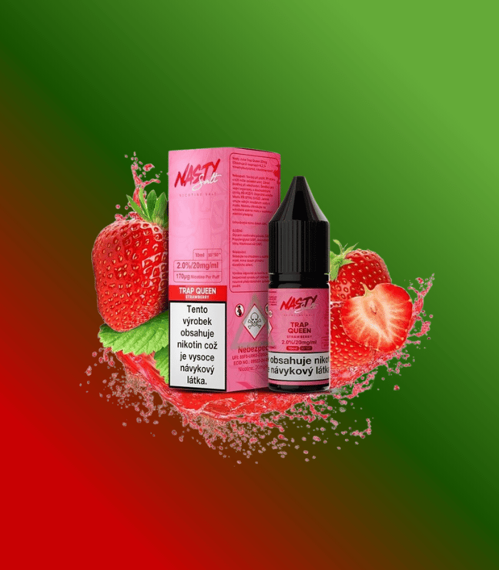 Nasty Trap Queen zaujme autentickou chutí zralých jahod, která není přehnaně sladká ani umělá. Poměr 50VG / 50PG zajišťuje vyvážený poměr mezi tvorbou páry a výrazností chuti. Díky nikotinové soli s koncentrací 20 mg/ml pocítíte rychlý nástup účinku bez podráždění v krku. Trap Queen je bez mentolu – nabízí čistý ovocný zážitek.