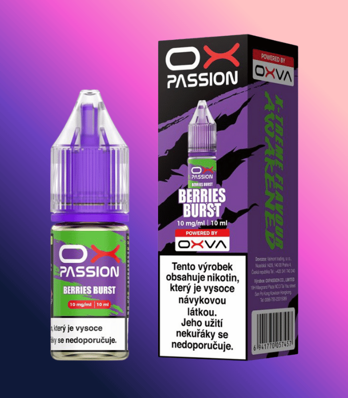 OXVA OX Passion Salt Berries Burst – exploze chutí bobulového ovoce. Nikotinová sůl, VG/PG 50/50, balení 10 ml, osvěžující ovocný e-liquid pro MTL vaping.
