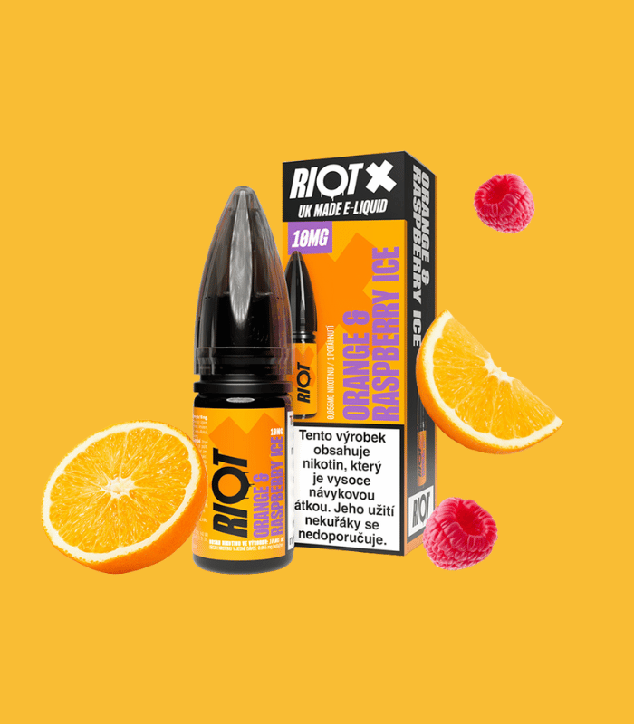 Značka RIOT Squad představuje kolekci RIOT X Salt jako novou éru mezi salt e-liquidy. Každý e-liquid této série byl navržen tak, aby přinesl maximální intenzitu chuti, plynulý potah a dlouhotrvající zážitek. Díky použití nikotinové soli je potah jemný, bez podráždění v krku, ale zároveň rychle uspokojí chuť na nikotin. Orange & Raspberry Ice je důkazem, že i klasické ovocné kombinace mohou překvapit originalitou a kvalitou.