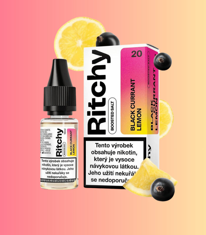 Ritchy Salt Black Currant Lemon využívá moderní nikotinovou sůl, která zajišťuje rychlejší vstřebávání nikotinu a jemnější hit bez dráždění v krku. Díky tomu si vychutnáte silnější uspokojení s menším množstvím potahů a prodloužíte životnost žhavících hlav i kapacitu baterie. Tento typ e-liquidu je ideální volbou pro všechny, kdo hledají komfort, stabilní výkon a hladký zážitek bez zbytečné intenzity.