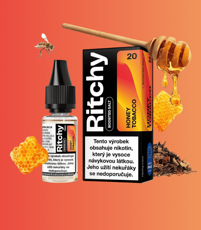 Ritchy Salt Honey Tobacco – elegantní tabák s tóny medu, bourbonu a ořechů. Hladký potah, vyvážená chuť a česká kvalita.