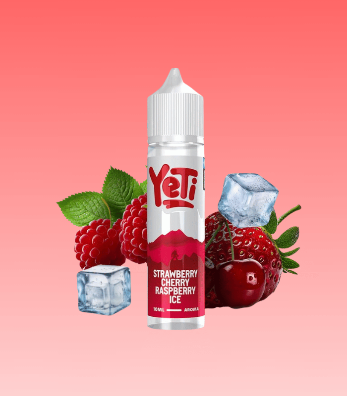 Yeti Summit Series Strawberry Cherry Raspberry Ice je 10ml aroma, které spojuje sladkou jahodu, šťavnatou třešeň a osvěžující malinu s ledovým efektem.